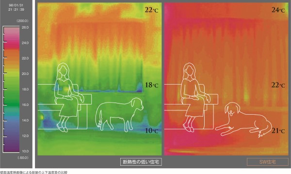冬のリビング、エアコンで快適な室内も、廊下やトイレは寒く感じるのではないでしょうか。この温度差は、暮らしの快適性を損ねるだけでなく、ご家族の健康にも影響を及ぼします。そんな、家の中の温度差を少なくするには、住まいの気密・断熱性能を高めることが大切なのです。
